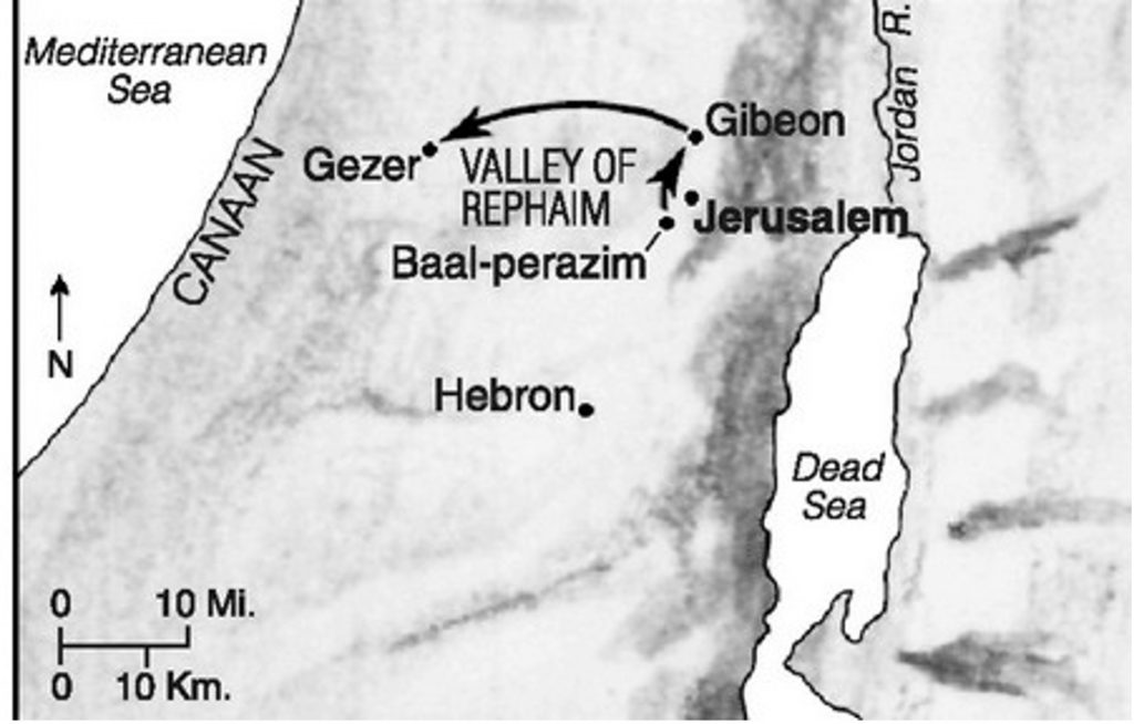13. The Philistines twice approached Jerusalem through the Valley of Rephaim but were soundly defeated on both occasions and were chased out of the hill country back to Gezer, which was their own city at that time (verses 18-25).
